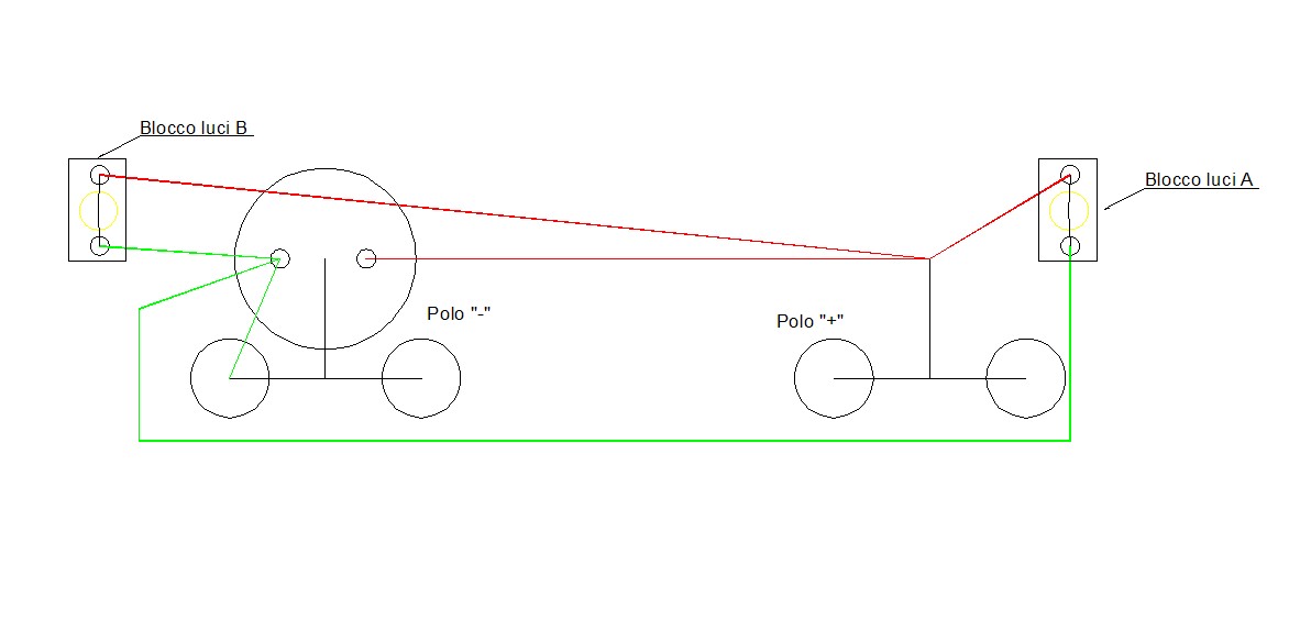 ma in pratica in qualunque direzione vada la tua locomotiva i led rimangono accesi sempre, giusto? Perchè se inverte la corrente vuol dire che il led viene attraversato sempre dalla corrente "corretta" e quindi questo rimane sempre acceso. Il principio del circuito, che si tratti di locomotive o vagoni è assolutamente identico: cambia solo la "fonte" della corrente: in una sarà direttamente dal motore, nell'altra dagli assali del vagone. Se mi parli solo di un sistema per i vagoni allora capisco anche il fatto di mantenere sempre accesi i led. Quello schemino lo avevo postato io, nella discussione di Bruno per i collegamenti delle lampadine della e444-001 della lima: per un impianto a led mancano almeno le resistenze in quello schema. Leo | |