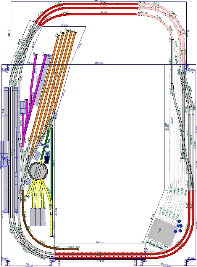 Grazie del supporto ragazzi! In questo giorno di vigliglia dell'Epifania mi è balenata nella testa una nuova idea... questo è il progetto originale come tutti ormai lo conoscete: Progetto originale.jpg http://www.baronerosso.it/forum/atta...1&d=1451986883 Da sempre non mi convince la soluzione che al tempo pensai riguardo la stazione nascosta (sulla destra con tracciati tratteggiati), l'idea di avere una stazione nascosta "passante" ovvero con un entrata e un uscita (utilizzabili in ambo i sensi di marcia) era stata dettata perché convinto (e forse lo sono ancora!) di una più semplice gestione. Questa soluzione del doppio accesso alla stazione nascosta ha creato altre problematiche, quella più grande a cui ho dovuto trovare una soluzione è la rampa a sud all'uscita della stazione nascosta, come potete vedere ha poco spazio (in rosso i tratti in pendenza) per risalire alla stazione principale anche se il divario tra i due livelli è di appena 4 cm (quota 7 cm per la stazione principale e quota 3 cm per la stazione nascosta), la soluzione appunto fu di avere solo 11 cm tra il livello della stazione nascosta e quello del livello sovrastante ad essa. Effettivamente 11 cm tra i livelli sovrapposti sono pochissimi dal punto di vista dell'inevitabile manutenzione necessaria alla zona stazione nascosta, problematica risolta dando la possibilità al livello superiore di essere removibile :yahoo: :yahoo: :yahoo: :yahoo: A questo punto ho prodotto questa alternativa: Alternativa Ponte Trasbordatore.jpg http://www.baronerosso.it/forum/atta...1&d=1451986893 Ho rimosso l'accesso alla stazione nascosta a sud trasformandola di fatto in stazione terminale, aggiungendo un ponte trasbordatore alla fine per il recupero delle loco. Dal punto di vista dei costi siamo sulla stessa cifre, è vero che un ponte trasbordatore costicchia e non poco ma consideriamo che ho eliminato ben 6 scambi (di cui 4 in curva) con relativo automatismo (uso roco cod 83 quindi una spesa di circa 270 Euro), inoltre il ponte trasbordatore è in una zona nascosta quindi non necessita di particolare "bellezza" e con le mie conoscenze potrei autocostruirmelo!!! L'eliminazione dell'accesso a sud mi ha dato la possibilità di aumentare la distanza tra il livello stazione nascosta e quello superiore, infatti la lunghezza dell'accesso a nord per la stazione nascosta può permettermi di portare la quota del livello stazione nascosta a 1,5 cm aumentando la distanza di 1,5 cm (più comodo ma comunque si rende necessario rendere removibile il livello come in origine). A questo punto chiedo a voi luminari un consiglio: meglio il progetto originale o l'alternativa con il ponte trasbordatore? E' più facile dal punto di vista di gestione del traffico treni avere una stazione passante? Nel frattempo ho terminato la rampa!!! ![]() http://www.baronerosso.it/forum/atta...1&d=1451987083 Grazie |