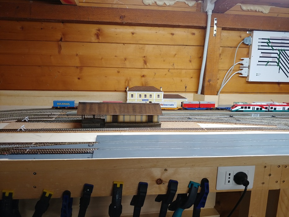 Posizionamento magazzino scalo merci: Il dubbio è a che punto posizionare il magazzino, considerando il fatto che i tronchino possono essere tagliati a piacimento, qual'è il punto dove posizionare il magazzino? Va bene dove è ora? e li va bene di quanto accorcio i tronchini? Grazie |