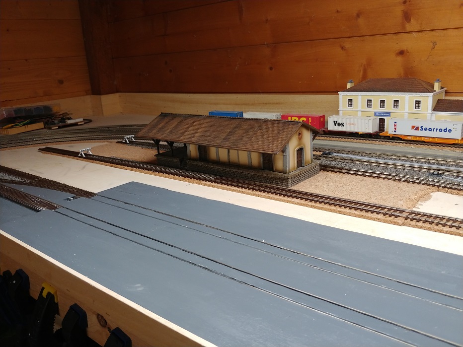 Grazie!!! Ora un nuovo dubbio... Nei tronchini dello scarico merci meglio i paraurti in ferro, quelli che si vedono nelle foto precedenti, o questi di legno che ho dipinto a mano personalmente per dare l'idea che lo scarico sia un po' stato abbandonato e soppiantato da quello container che sorgerà nei zona binari affogati nel cemento? |