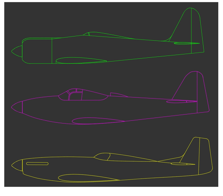 Il Rare Bear e il Corsair rosso e bianco si sono già visti come modelli RC, mentre il Super Corsair blu e argento non mi sembra sia mai stato riprodotto. Però a livello di visibilità in volo quello rosso e bianco è imbattibile. q |