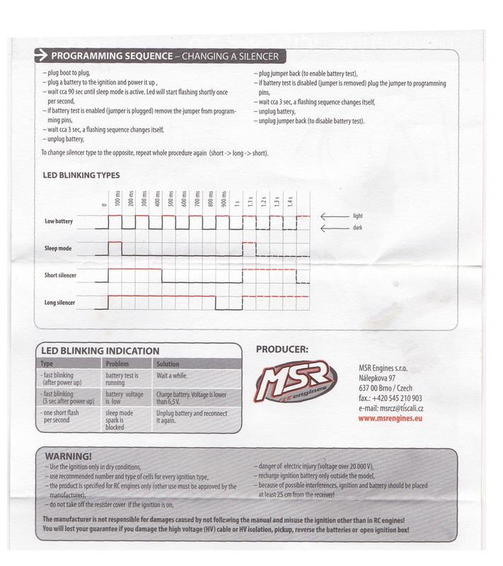 Test batteria effettuato : positivo Pick-up : due diversi motori Carburatore : potrebbe essere un'idea Rimane il fatto che questi due motori hanno fatto solo rodaggio e un breve volo senza problemi. La programmazione della centralina : me l'ha fatta venire in mente una discussione qui sul Barone su un MVVS 58, che avevo venduto io, che si fermava all'improvviso, proprio come questi. Il problema è stato risolto riprogrammando la centralina. Le istruzioni sono in inglese tradotto dal ceco, ci sono anche in tedesco. Seguite passo-passo sarebbero anche chiare, il fatto è che ci sono due colonne e non riesco a capire se, tra le varie possibilità, vanno lette e eseguite in orizzontale o in verticale passando da una all'altra anche perchè la differenza di velocità di lampeggio del led che indica il passaggio da una condizione all'altra trovo sia difficilmente percepibile. Appena posso allego un'immagine. |