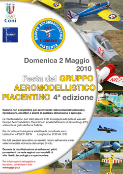 | Festa 2009 del Gruppo Aeromodellistico Piacentino | SanK-PC | Calendario Manifestazioni | 0 | 24 marzo 09 12:24 |