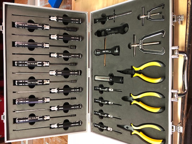 Vendo due cassette di attrezzi specifici per automodellismo. Le cassette sono in alluminio come tutti gli attrezzi, una è più grande e contiene nr. 26 attrezzi, cacciaviti a taglio, croce, brugola, e bussola, poi ci sono due estrattori, tre pinze, foro carrozzeria, ecc ecc. La seconda più piccola contiene nr. 21 attrezzi, cacciaviti a brugola, e bussola, due estrattori, due pinze, accendi candela, ecc ecc. La cassetta grande la vendo ad euro 110, la piccola a euro 80, i prezzi sono compresi di spedizione con corriere e sono trattabili. Per foto più dettaagliate contattatemi in privato. --------------------------- Nome: Gianluca Cognome: Rota Città: Verona |