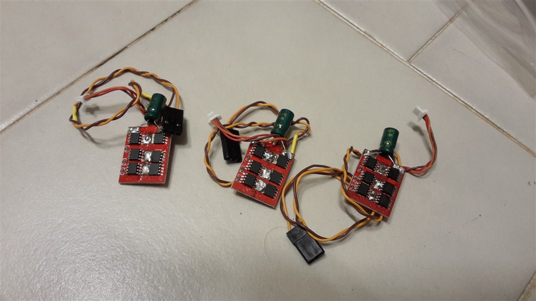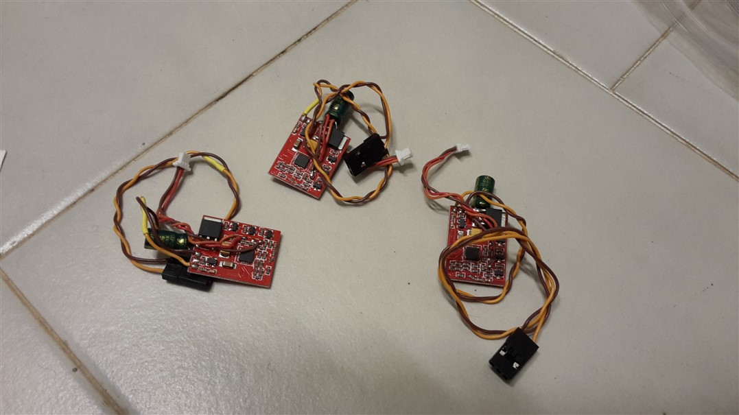 -3x EMAX 12A usati, quelli venduti come SimonK ma che in realtà hanno una versione modificata di BLHELI. Io li ho fleshati con BLHELI ed ho lasciato il connettore per la programmazione quindi con il toolstick per esc sliabs possono essere aggiornati. Ottimi anche per aerei.