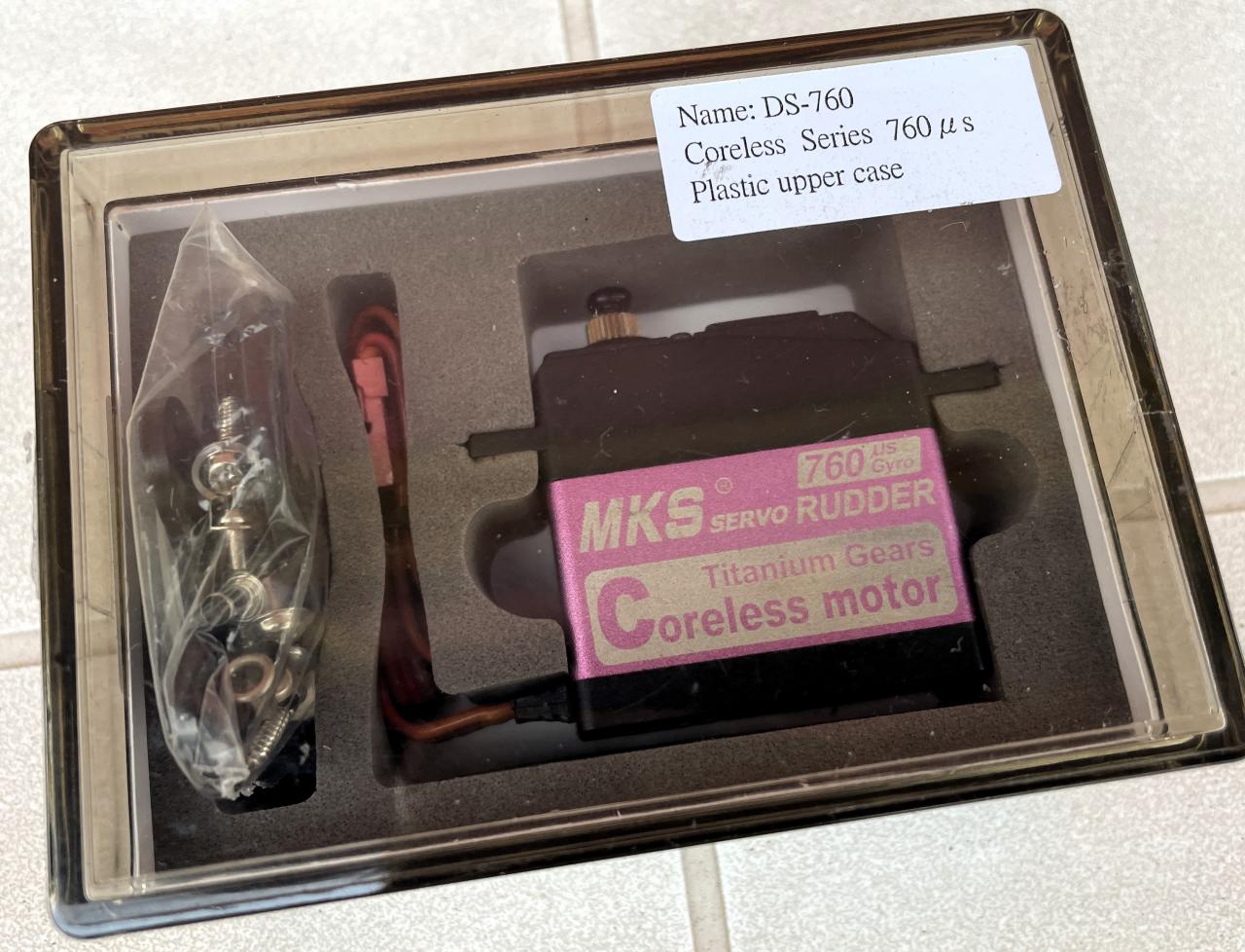 | MKS DS760 Tail Servo USATO, OTTIME CONDIZIONI TESTATO PERFETTAMENTE FUNZIONANTE E' incluso un secondo servo, NON FUNZIONANTE, per ricambi. Servo Coreless MKS DS760 4,8-6V 4.9kg 0.027 sec/60° - ingranaggi in metallo - motore coreless - Doppio cuscinetto per maggior precisione e scorrevolezza - 760 uS (PERFETTO PER CODA ELICOTTERI) - Maggior resistenza a urti e vibrazioni - Movimenti piu' fluidi Caratteristiche tecniche: