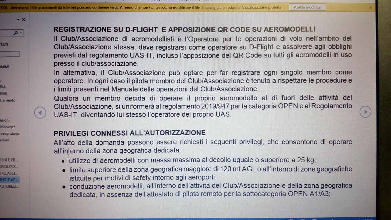 Se l'Enac approva, il campo e' registrato nei loro sistemi e viene rilasciato una specie di certificato da mentecatti. CI sono solo lati negativi ma anche 1 agevolazione . A discrezione dell' associazione operante su quel campo, i membri quindi i modellisti possono essere esonerati dal conseguimento dell'attestatoCatto A1 A3. Il QRcatto assegnato a quella associazione e' valido per i modelli operanti solo in quel campo. Lo scrive Enac nel suo sito nella sezione "registrazione campi di volo". In alternativa valgono le leggi per i CattoDronati. Attenzione! Sulla certificazione Enac scrive, CHIARAMENTE, che la certificazione del campo puo' essere declinata per esigenze sovragiunte! Quindi se prima operavi e quello di quella casa li giu' era ' infastidito dai modelli, doveva prendersela con ogni singolo modellista. Dopo basterà' telefonare ad Enac = campo di volo / zona interdetta all'attività. Se di interesse meglio leggere sul sito Enac. Saluti PS L' esempio della casa potrebbe significare che il proprietario e' preoccupato per ipotetici o probabili incidenti..... |