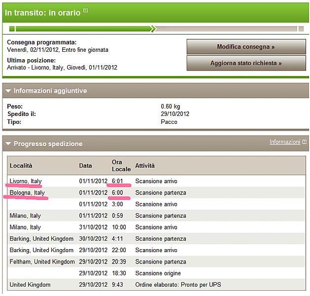 ![]() | ![]() Però!!! Quelli di UPS sono proprio veloci!!! ![]() Guardate il tracking della mia spedizione... ![]() Come prevedevo, si confermano i 10 gg dal click alla consegna... ottimo!
