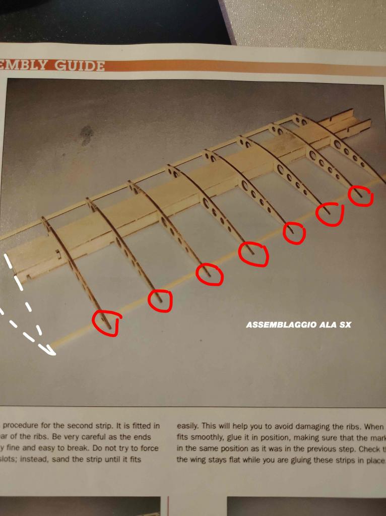 Mi pare proprio un errore. questo kit possiede piani di costruzione? comunque essendo un listello da sagomare a forma di ala di pipistrello viene anche piu semplice; dovrebbe andare di sotto e poi con un tocco di legno piano con carta vetrata sagomi il dorso della parte finale della centina