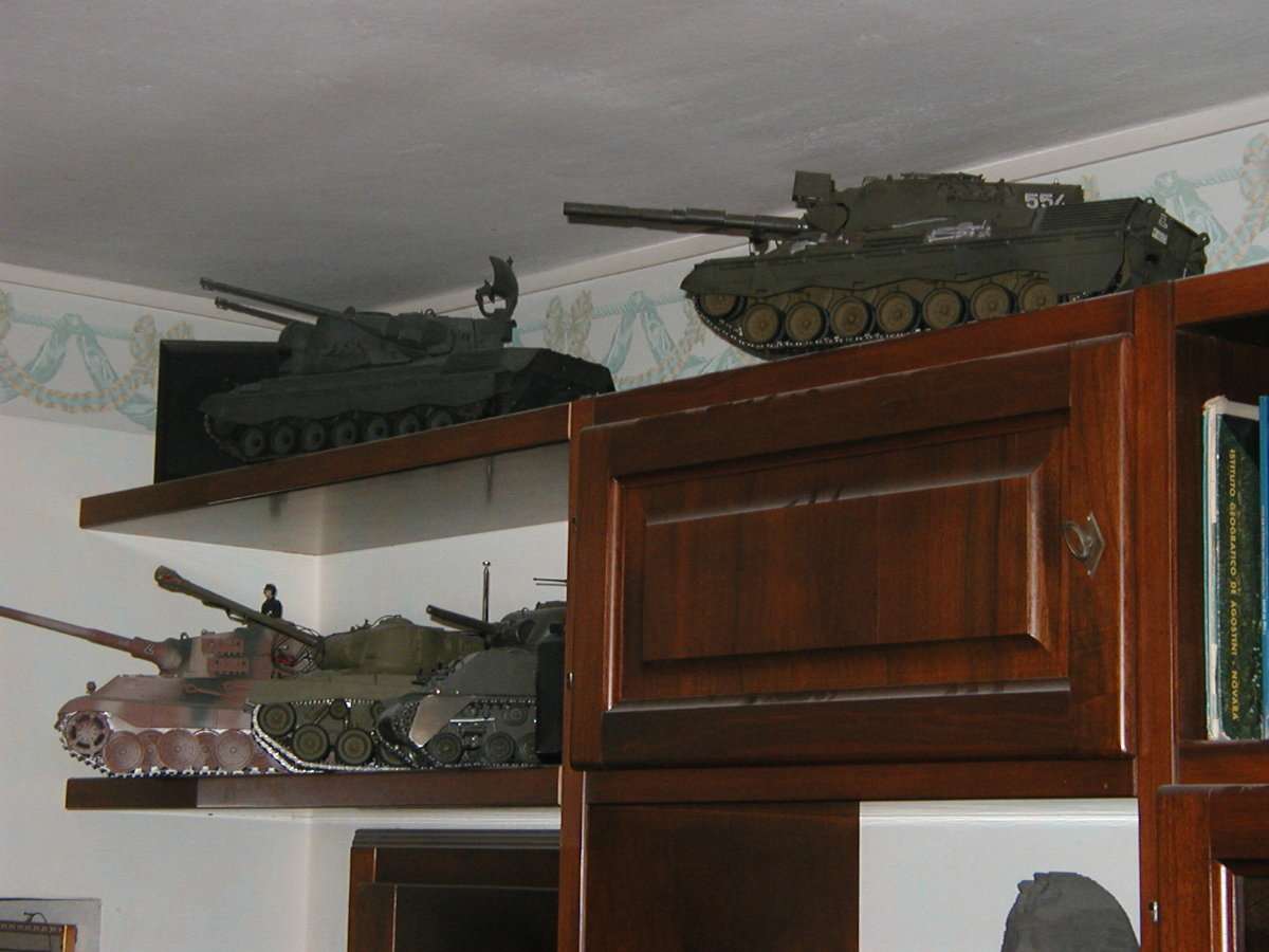 Ne ho uno anche io, uno Sherman della Tamiya. In realtà non l'ho mai finito, è funzionante e lo uso spesso, però mancano ancora molti particolari estetici (che non ho mai voglia di verniciare e montare) |