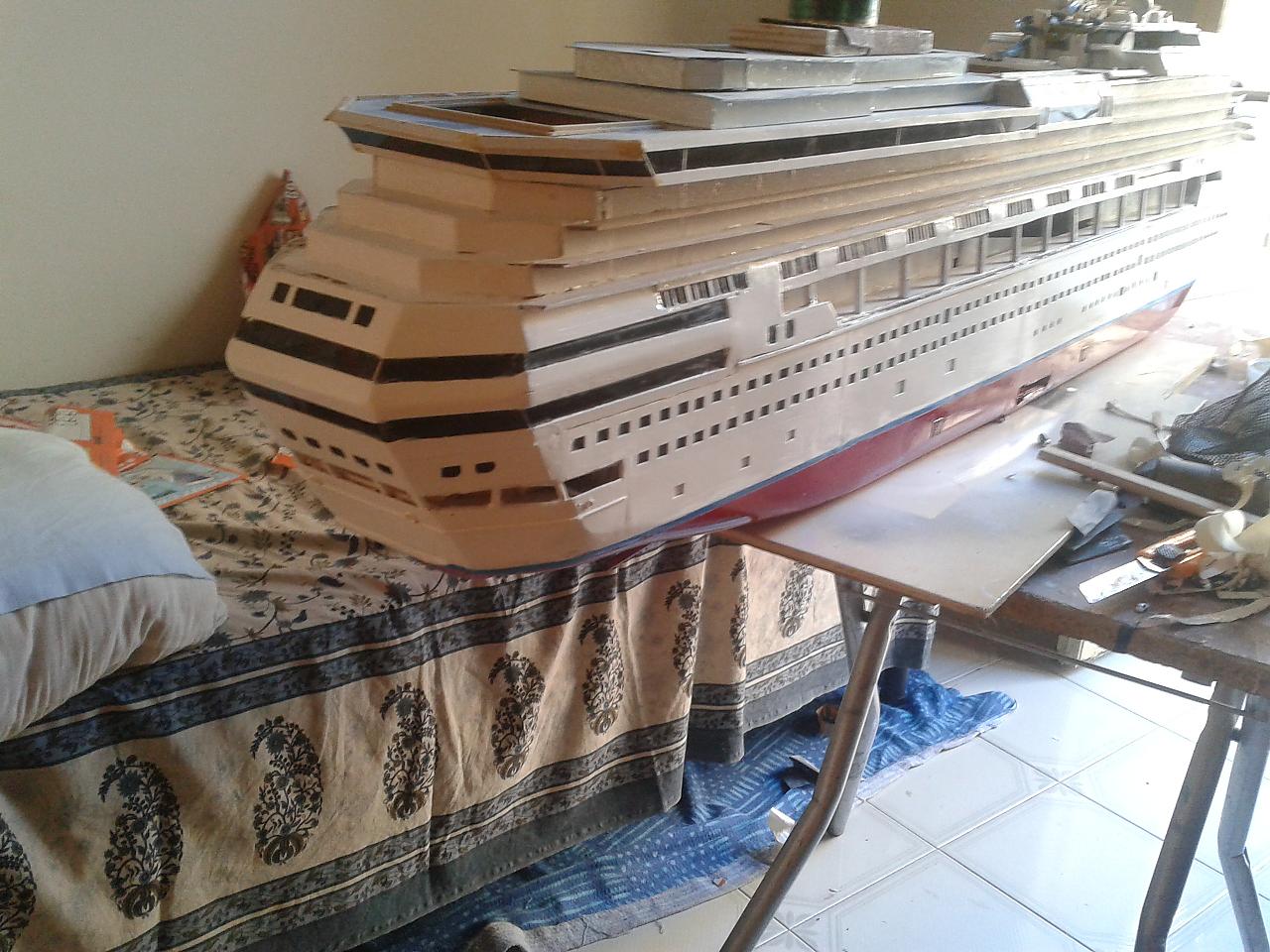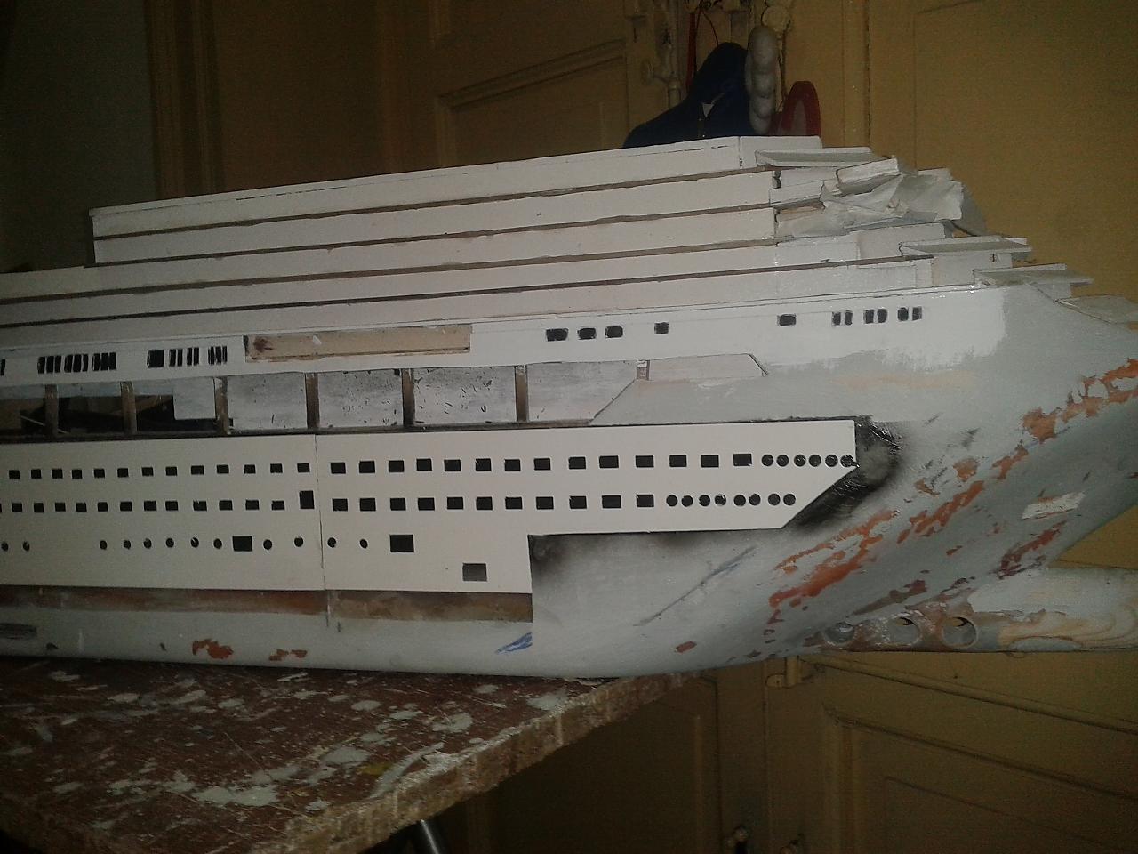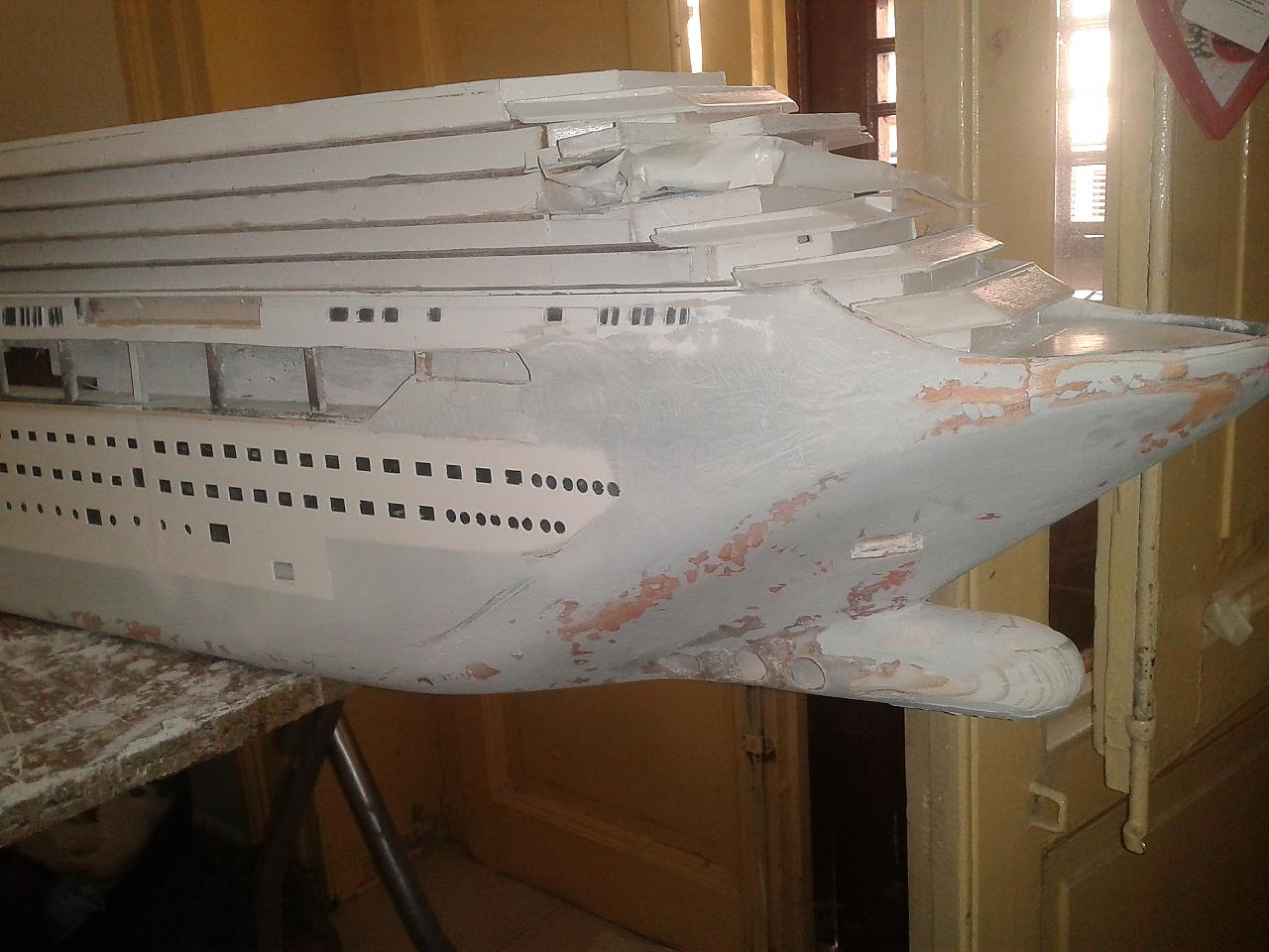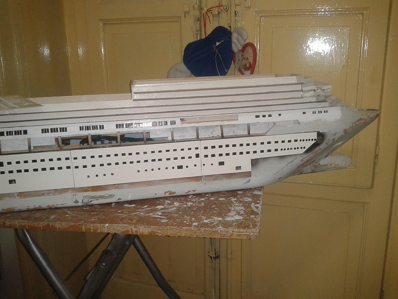 ciao tanglewood, grazie allora il modello è lungo 145 cm in scala 1/200. largo 18/20 cm alto circa 40 cm. i per il peso alla fine con zavorra , batteria e motori e tutto dovrebbe aggirarsi sui 15 kg |