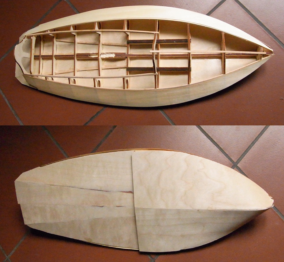 Grazie ai disegni di Silu,anche io ho iniziato la costruzione dell'Asso Ho sbagliato a stamparli ed è diventato più piccolino, ho aumentato lo spessore degli scarponi x aumentare la galleggiabilità, lo lascerò con i listelli in mogano a vista Già che ci sono: che motorizzazione x 40 centimetri di scafo? Giorgio |