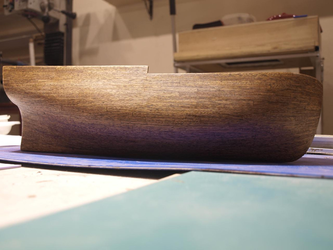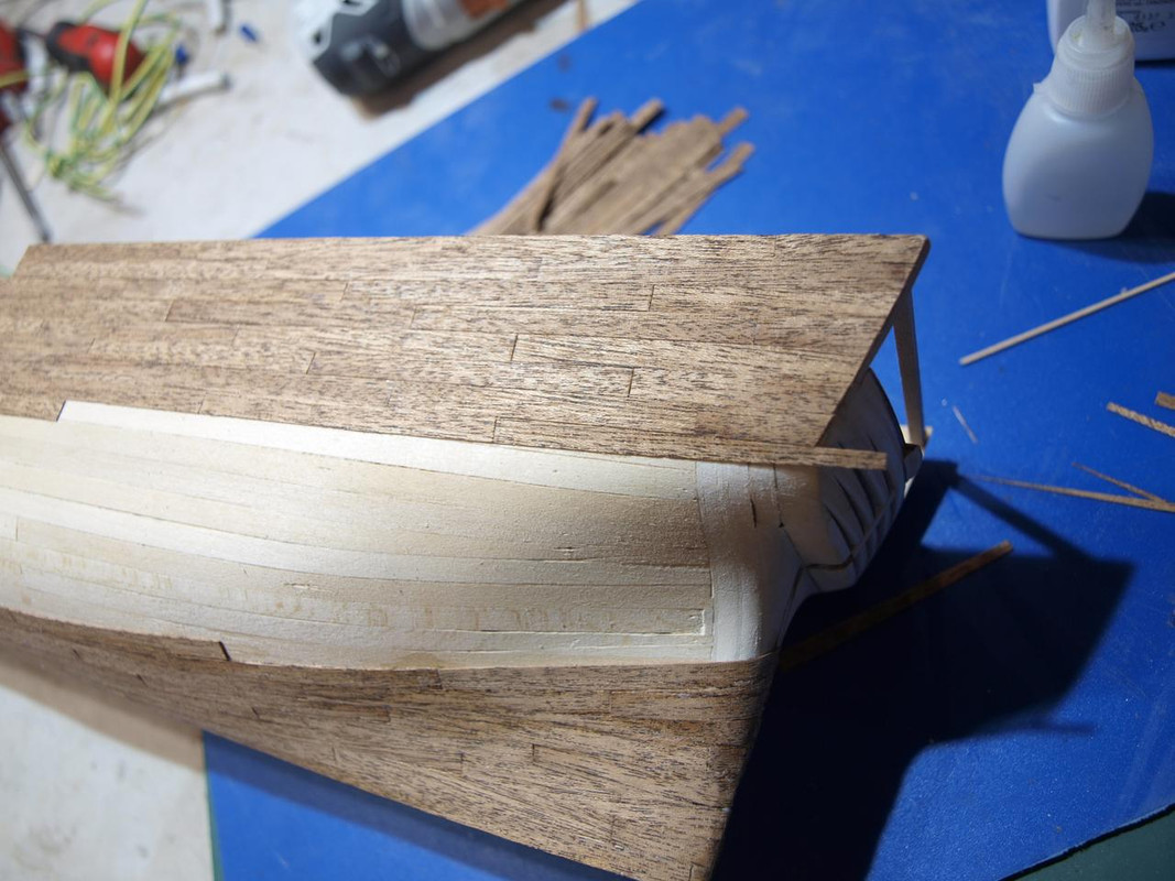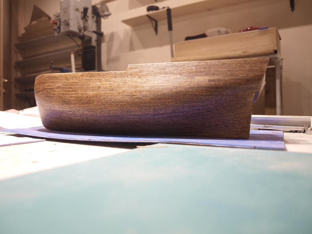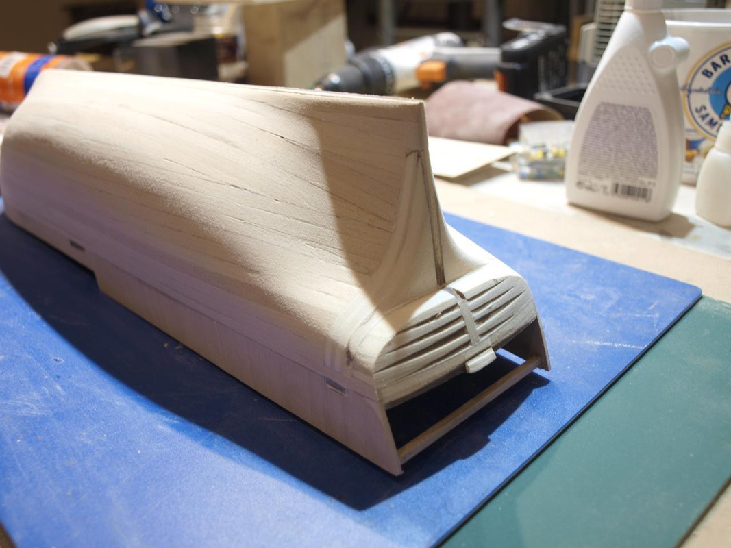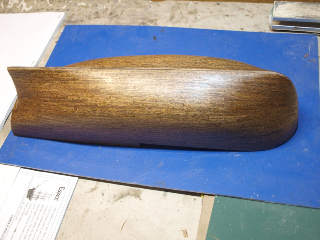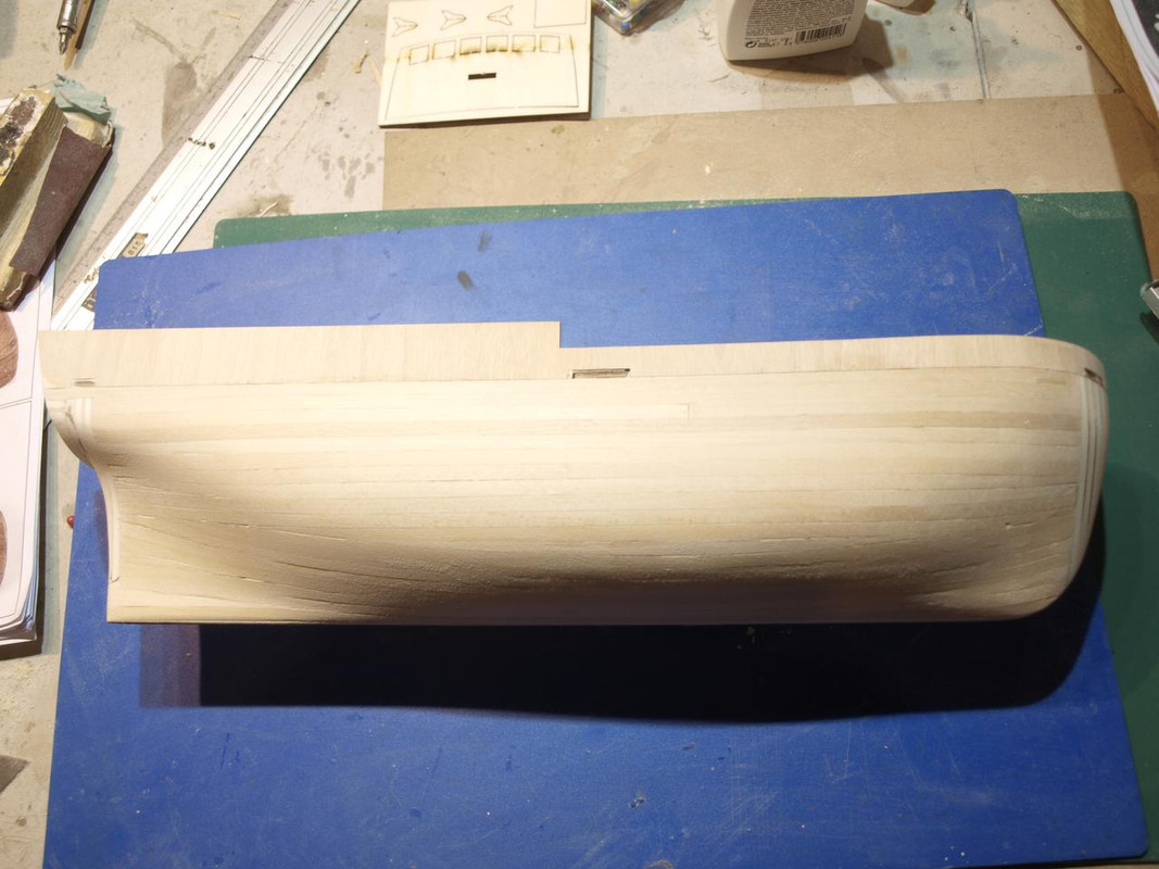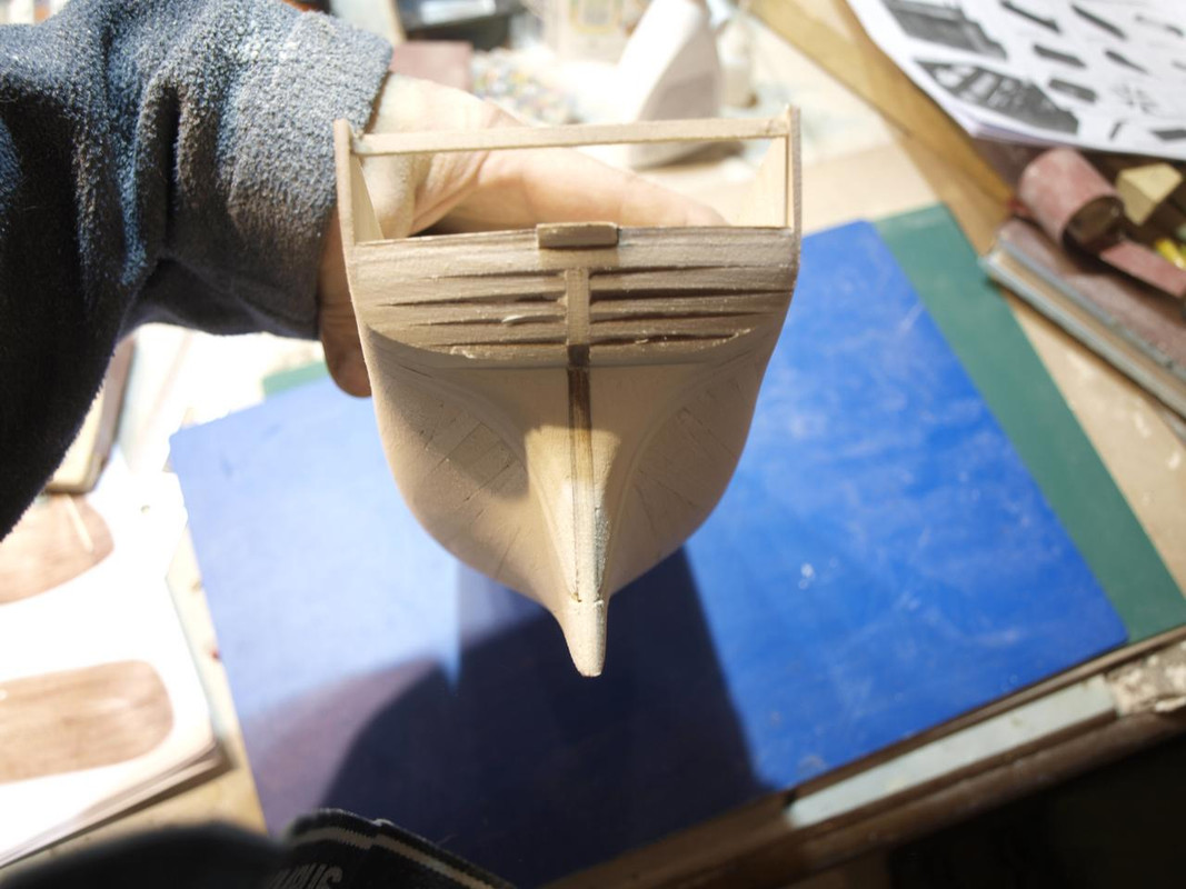 Bellissima, mi piace molto il finto fasciame fatto a pezzettini ... È molto realistico e poi la finitura in gommalacca .Come mai, dopo tutto il lavoro extra delle finestre hai deciso questa modifica radicale allo specchio di poppa? Hai trovato documentazione per farla "diversa"?