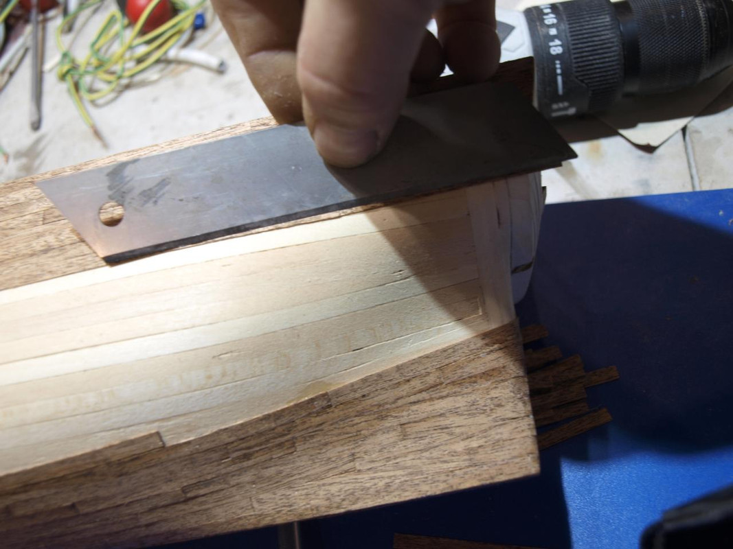 Ho finito il rivestimento del secondo fasciame in mogano. Ho iniziato tagliando svariate listarelle di 60mm e le ho assemblate secondo lo schema in foto ![]() ![]() ![]() il rivestimento a tavole lo trovo più semplice di quello proposto nelle istruzioni. nelle curve occorre rifilare qualche spigolo e magari capire come vanno rastremate le tavole alle estremità della barca ma è sicuramente più semplice piuttosto che doverlo fare a dei listelli interi che non amano nemmeno troppo flettersi in piano quando verranno incollati. ![]() Rivestendo con le tavole inoltre si evita di avere un modello a strisce perchè i listelli hanno inevitabilmente tonalità random. è più semplice incollarli essendo singoli tratti da 6cm. per incollarli uso generalmente la vinilica ma nelle curve adopro un ciano molto liquido che stendo sottile sullo scafo, la tavola invece la inumidisco appena di vinilica e in questo modo l''incollaggio è istantaneo.. non permette errori perchè il ciano con la vinilica catalizza all'istante. ![]() ![]() ![]() Una volta carteggiata la superficie basta dare una passata di gomma lacca, aspettare 20 minuti che asciughi e carteggiare nuovamente con una carta più fine. Ultima mano di gomma lacca e per adesso basta così. ![]() ![]() Ultima modifica di wrighizilla : 23 dicembre 19 alle ore 16:05 |