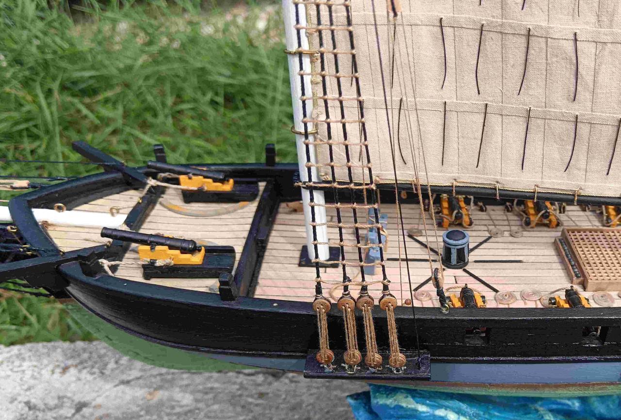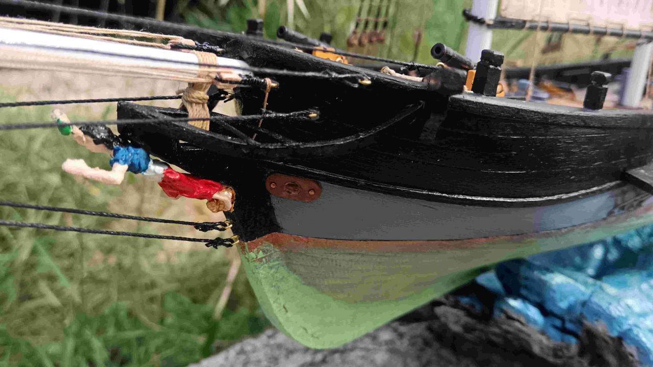 A circa metà altezza ho cambiato il filo delle griselle con uno identico ma più sottile ( 0,25 al posto di quello da 0,4 ) ,visivamente non dovrebbe notarsi molto . Questo mi aiuta quando le sartie sono più vicine tra loro ed i nodi di grisella risulterebbero troppo grandi ...
