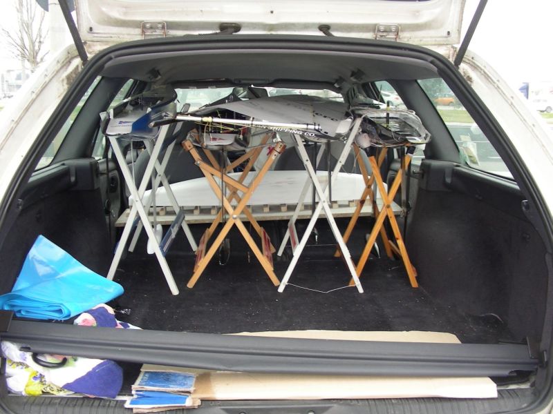 Questa foto mostra come ho trasportato al campionato italiano a Ravenna nella mia Smartina due barche, 3 armi completi di albero e bomi, zaino con attrezzatura per le barche, 2 cavalletti in legno abbastanza grossi, fiocchi di scorta, 2 valige, giacche a vento, sacchetto delle vivande, ragazza e a altre cose varie per 900 km fra andata e ritorno. Il segreto è ottimizzare gli spazi!!!