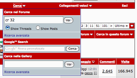 Riporto qui un post di un utente che spiega alla perfezione come cercare quello che vi può servire:D il post viene dalla sezione aeromodellismo... ma le ricerche funzionano allo stesso modo dappertutto:wink: Post: Guida: come fare ricerche nel forum Forum: Aeromodellismo Principianti Posted by: SlowFlyer Original Content: Citazione: