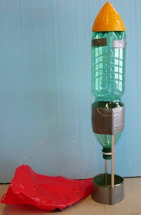 PRESENTAZIONE DEL PROGETTO TIPO Le soluzioni sono parecchie e tutte funzionanti. Va prestata la necessaria attenzione alla precisione nella costruzione dei vari elementi e alla loro unione. Un volo perfettamente verticale esige un allineamento perfetto di tutta la struttura. Il tappo che chiude l’ugello con il relativo sistema di ammissione dell’aria compressa va costruito con la massima attenzione alfine di evitare dannose perdite d’aria. Pensando all’espulsione d’acqua in fase di decollo vale la pena di allungare il condotto dell’aria compressa di qualche metro. La verticalità è garantita da una base orizzontale e piana posata sul terreno o da guide che stabilizzino la partenza. Da studiare le modalità per la discesa. L’impiego di un piccolo paracadute è sufficiente per fare posare il razzo senza danni. Soluzioni più sofisticate sono comunque possibili e meritano uno studio a se. |