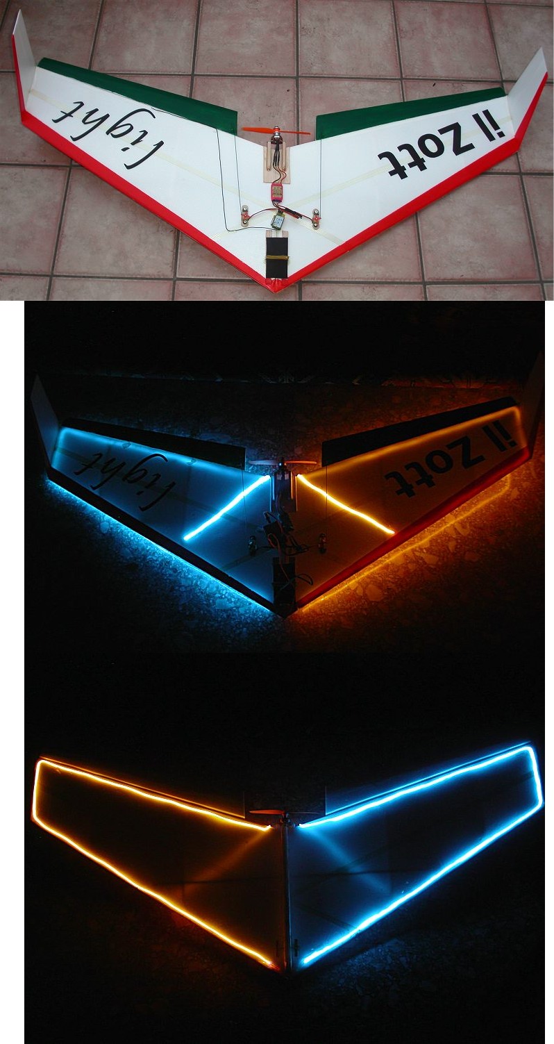 ma voi l'avete mai fatto? non è cosi facile tener su un modello di notte... ho fatto diversi modelli da far volare la sera e incasinarsi è facile, sopratutto capire che l'areo sta picchiando ( anche poco) non è cosi semplice. serve sopratutto un modello facile da far volare ma sopratutto che conoscete benissimo come vola, ho volato sia con il photo-one (trovate il progettosul sito) che con uno schiumino classico. Sul primo avevo messo dei led alla fine delle ali , uno in coda e uno davanti, mentre con lo schiumino avevo utilizzato i tubetti luminosi messi intorno alle ali, cosi avevo una freccia illuminata, com quello era più facile volare. foto: http://www.ilzott.it/antani/led.jpg http://www.ilzott.it/antani/neon.jpg Ciaooooo |