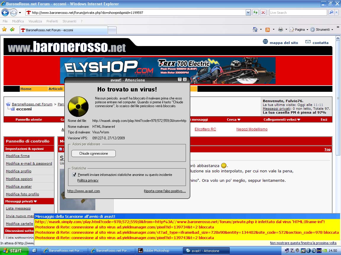 Ma porcavacca!!! stavo per scrivere proprio questa cosa e già ho trovato la discussuone aperta!!..allora non sono l'unico,qualcosa c'è!!![]() ![]() Io quando vado nei messaggi privati,l'antivirus mi avverte che ha bloccato un virus. Ecco la schermata. ![]() Poi una volta chiusa mi da altre due tre segnalazioni di virus! Come mai???!!! A me lo fa solo negli MP sembrerebbe! |