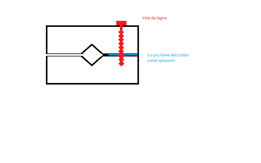 mah fare una dima/guida non e molto complicato.. un po' di inventiva e la si fa.. per il dispendioso dipende sempre da cosa devi farcene, ovviamente prenderne 3 o 4 piu le ss non ne vale la pena, ma se devi acquistare piu cose... se devi tagliare sempre gli stessi listelli io farei la dima, e taglierei con il cutter, che non porta via materiale, ovviamente devi fare una dima per ogni "dimensione" del listello.. per fare la dima puoi usare una fresa a V a 90° in un listello di legno di abete se hai un trapano a colonna e una morsa da usare come guida la puoi fare abbastanza agevolmente... ne fai due in modo da chiudere il listello a panino nei listelli di legno duro, con una piccola fessura, interponendo una lama da cutter nella zona inferiore in modo da lasciare nella zona superiore lo spessore del cutter per il taglio... allego un piccolo schema fatto col paint. ovviamente ci sono anche altri modi per creare la V...