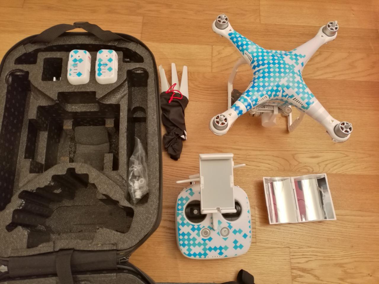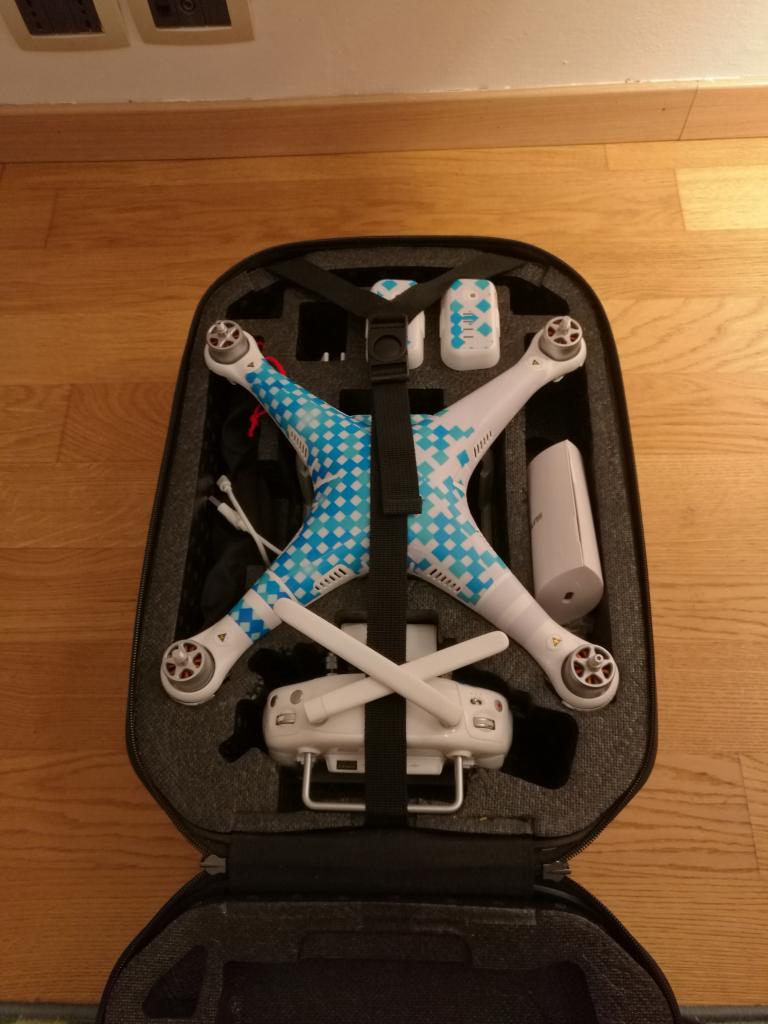 Phantom 3 advanced con 2 batterie più eliche di scorta e zaino originale della dji. Drone acquistato su Amazon con ancora 4 mesi di garanzia ufficiale.Accessoriato con piastrine di metallo sotto i motori e riflettore per antenne. 480€ --------------------------- Nome: Paolo Cognome: Tommasini Città: Vicenza