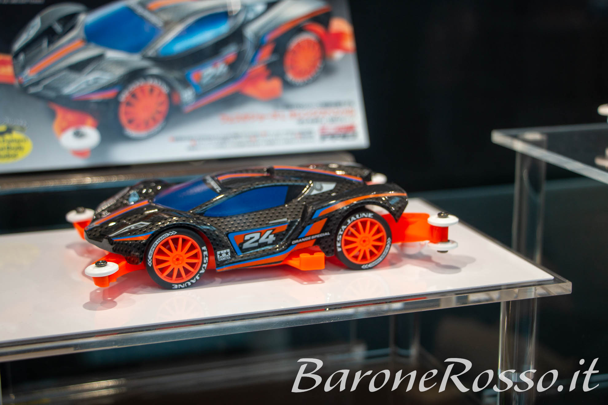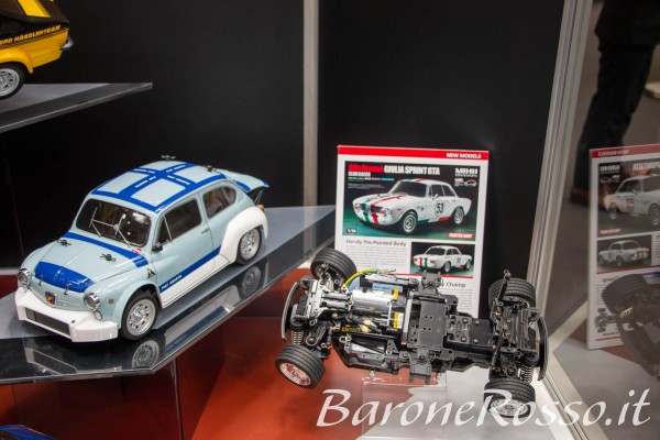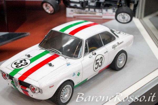 Partiamo con una veterana della fiera, la giapponese Tamiya, non molte le novità esposte ma tra le varie ecco la bellissima carrozzeria Alfa Giulia Sprint GTA su meccanica MB-01.