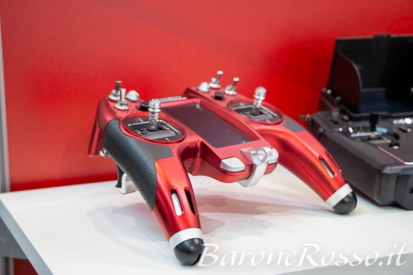 Molto particolare il radiocomando Flysky EL18, tutto in alluminio con display touch a colori, ha una forma che ricorda i pad delle console di gioco, probabilmente per attirare le nuove generazioni.
