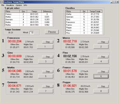 Una volta lanciato il programma dovete inserire il nome/i del pilota/i, il nome della pista e siete pronti per registrare i tempi.