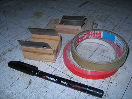Dopo avere costruito le pale in legno una parte essenziale della messa a punto del vostro elicottero è il bilanciamento delle stesse per non avere vibrazioni indesiderate. Non è una cosa difficile da fare e non richiede ne attrezzature complesse ne molto tempo. Per fare il lavoro abbiamo bisogno di: 1 pennarello nero indelebile a punta fine, scotch trasparente da 25 mm, scotch colorato da 10 mm, e due lame di cutter fissate ad un pezzo di legno come da foto... |
