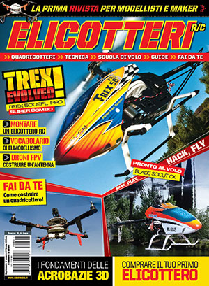 Il numero zero lo trovate già in edicola a 5,50 euro. All'interno troverete il test dell’elicottero per volo acrobatico 3D T-Rex 500 EFL Pro, il modello entry level Blade Scout CX della Horizon Hobby, pagine dedicate alla tecnica con articoli sulla manutenzione, trucchi per assemblare il vostro elicottero, i fondamenti delle acrobazie con la spiegazione su come eseguire le manovre base, l’autorotazione, l’avvitamento durante il volo frontale e il Tic Toc. I modellisti appassionati di “Fai da Te” troveranno articoli su come costruire un quadricottero e un’antenna FPV (First Person View). Per rendere tutto comprensibile anche ai meno esperti abbiamo preparato una sezione con il vocabolario di elimodellismo con le spiegazioni dei vari termini usati in questo hobby.