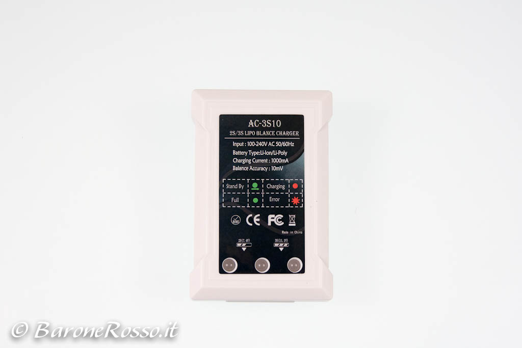 La struttura realizzata in plastica bianca e nera (ma presto saranno disponibili anche le colorazione rosso, nero, giallo e azzurro) ricorda nelle forme un aeroplano visto in qualche film o anime futuristico. La configurazione di volo è di tipo ad X, di dimensioni 280x310mm (quindi non perfettamente quadrato), sulla parte superiore sono presenti una bella presa d’aria per il raffreddamento dei regolatori e, su un apposito supporto, il sensore del GPS.
